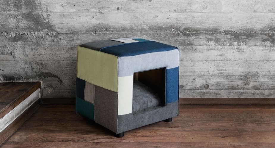 Ottoman made from leftover fabrics with space for pets 45 × 45 cm